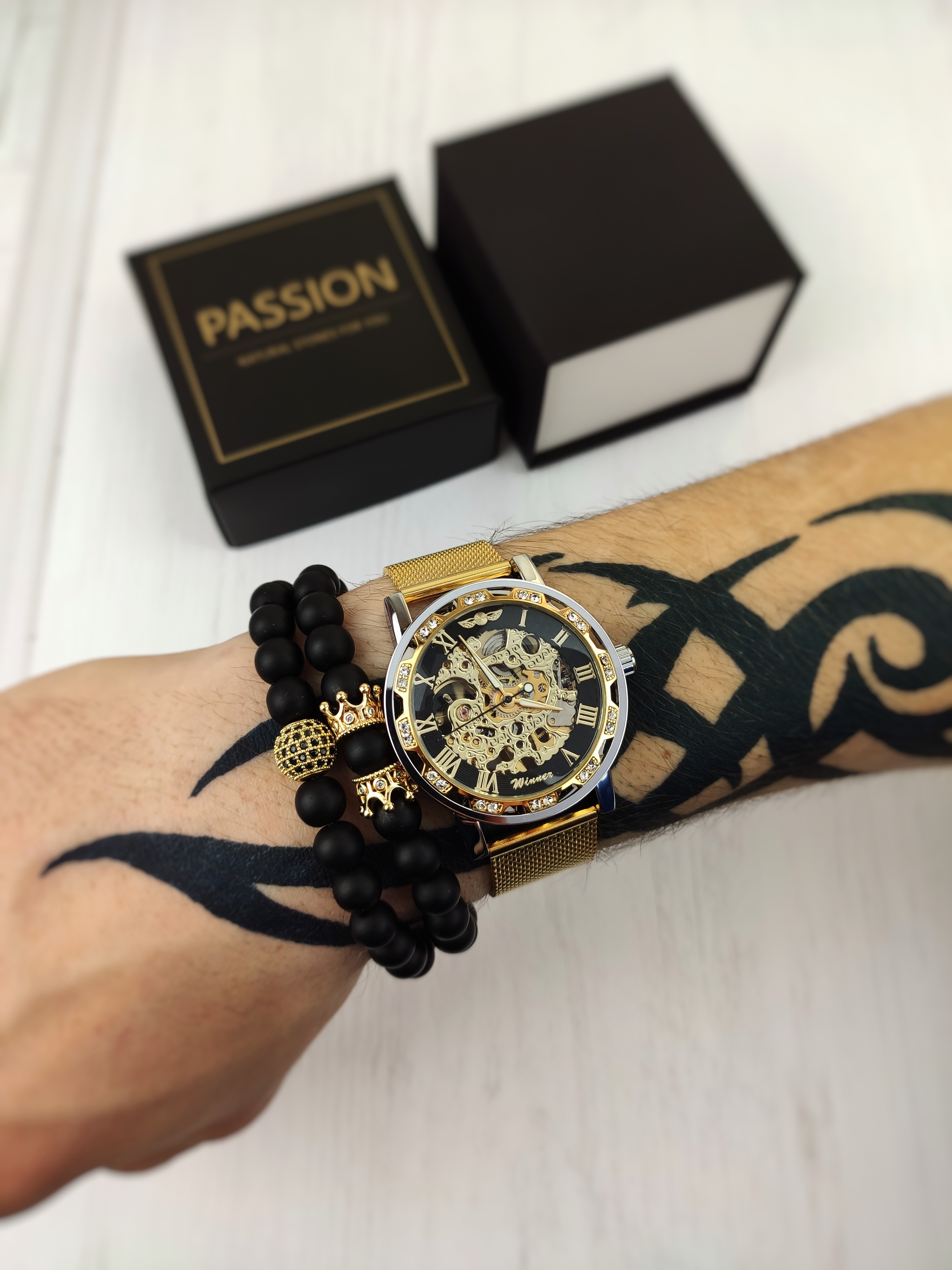Браслети запаковані в гарну чорну коробочку (без подушки)