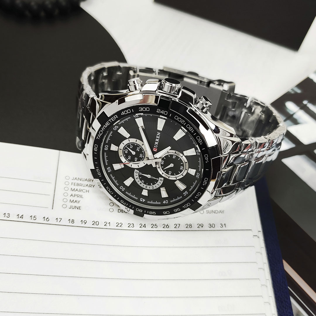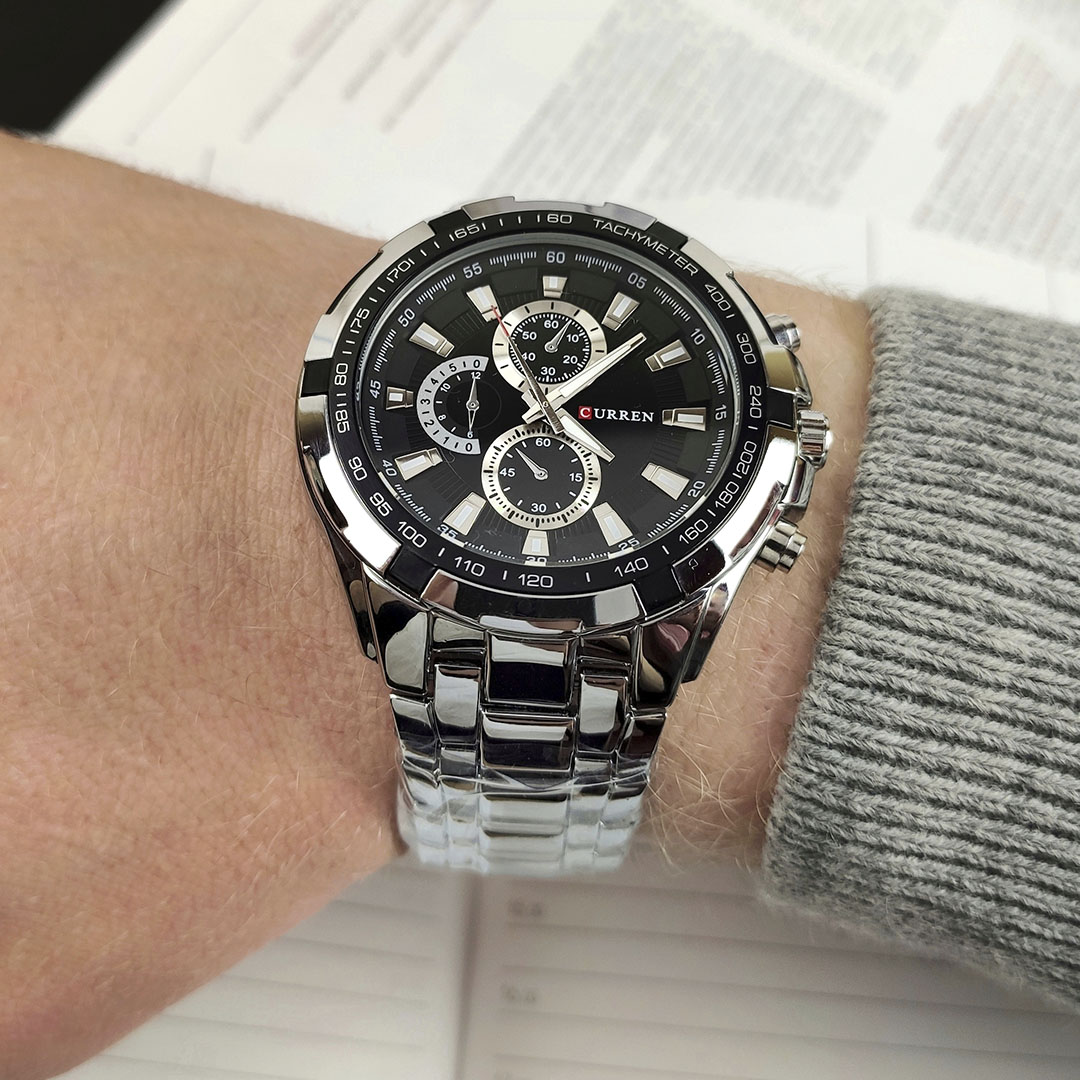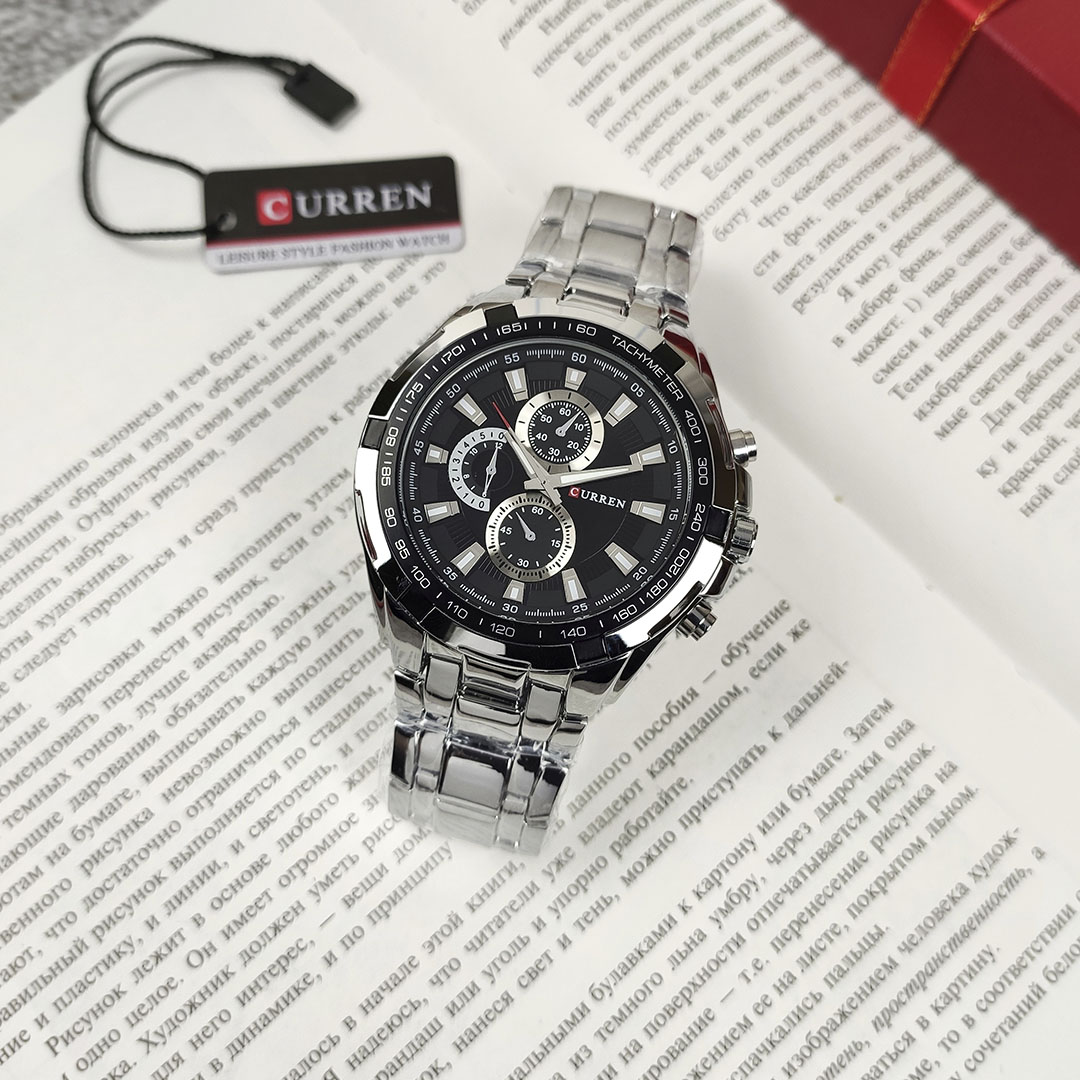 Бренд Curren випускає якісні та недорогі кварцові годинники. Їх відрізняє стильний сучасний дизайн і відмінна якість збірки. Корпус виконаний зі сталі, ремінець стальний. Годинник чудово підійде як під класичний, так і під повсякденний або спортивний образ. Всі представлені нижче фотографії та відео зняті нашим магазином. На цю модель діє гарантія впродовж 12 місяців.