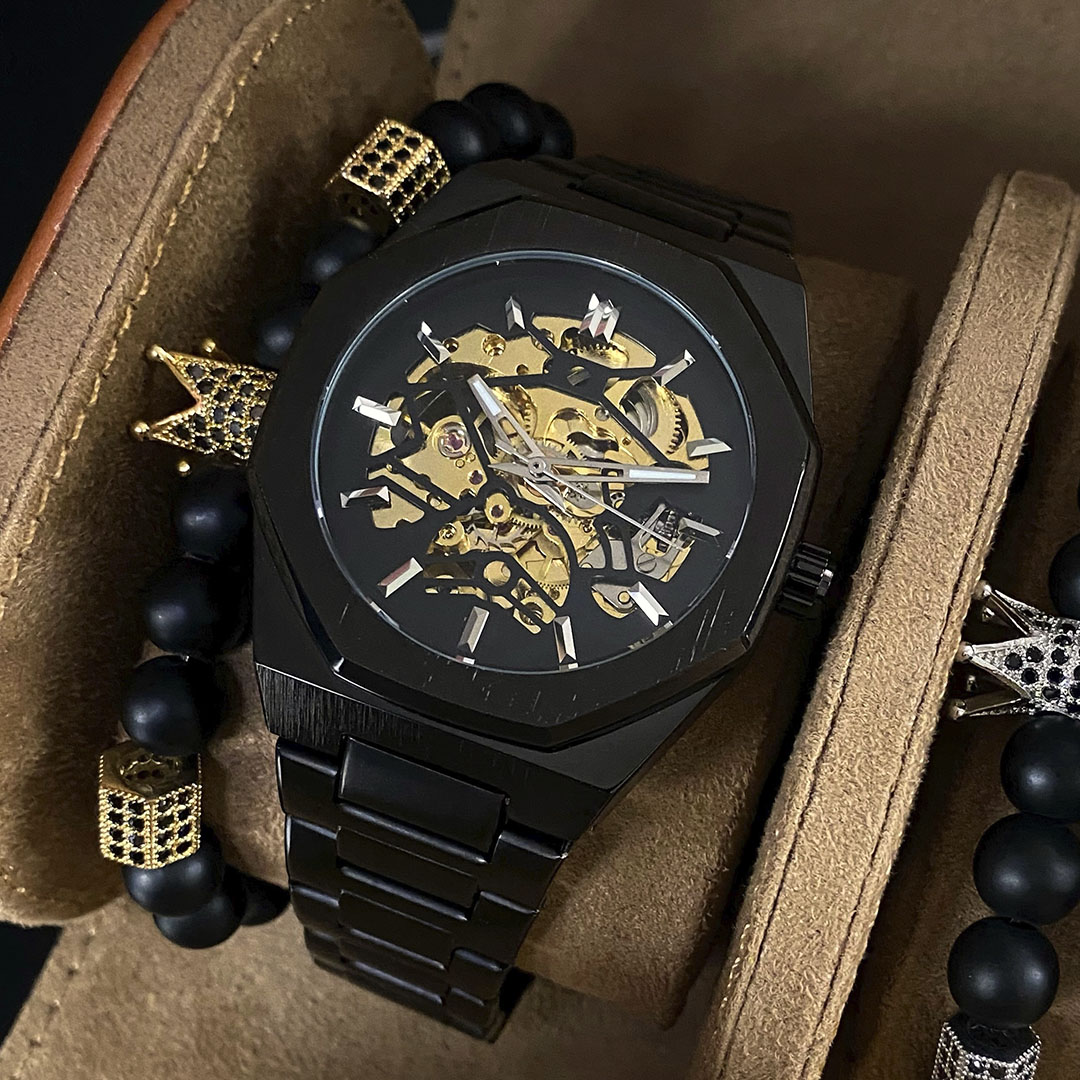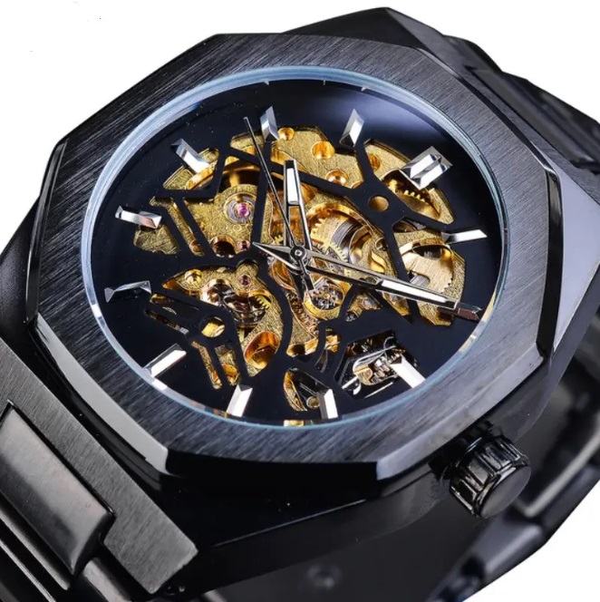 | ОСОБЛИВОСТІ | – СТРІЛКИ СВІТЯТЬСЯ В ТЕМРЯВІ – МОДЕЛЬ СКЕЛЕТОН (ВИДНО МЕХАНІЗМ) – 8-МИ ГРАННИЙ ЦИФЕРБЛАТ |