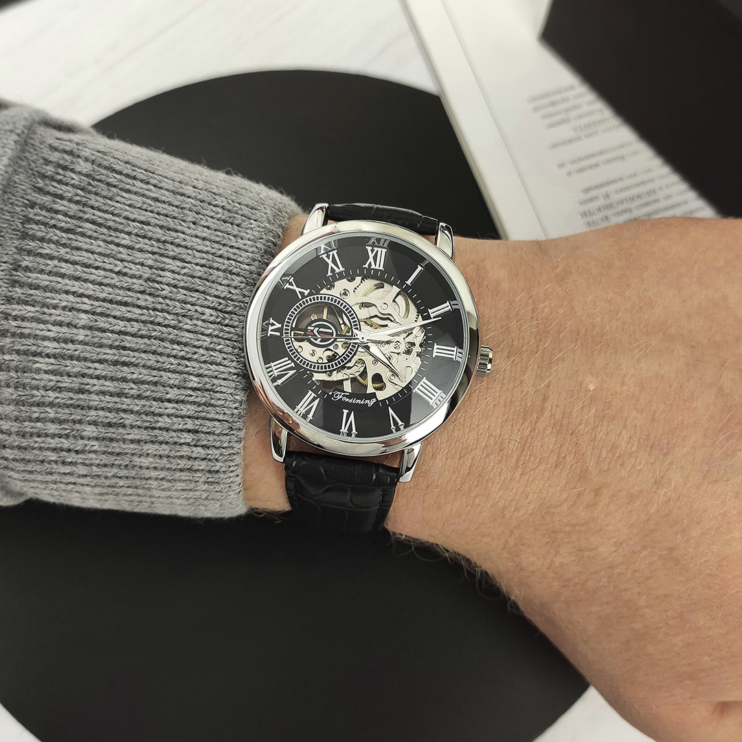 Дана модель годинника Forsining – механічна. Модель відноситься до типу скелетон, а це означає, що крізь скло можна спостерігати, як працюють шестерні механізму. Такий годинник популярний серед цінителів стильних аксесуарів по всьому світу. Циферблат прикрашений орнаментом. Ремінець годинника фактурний, прошитий нитками, – це робить його надійнішим. Корпус годинника виготовлений з нержавіючої сталі. Такий годинник відмінно підійде для будь-якого приводу: навчання, робота, ділова зустріч, прогулянка або побачення. Комбінуйте Forsining Rich з різними вбраннями, використовуючи їх як стильну особливість образу!
