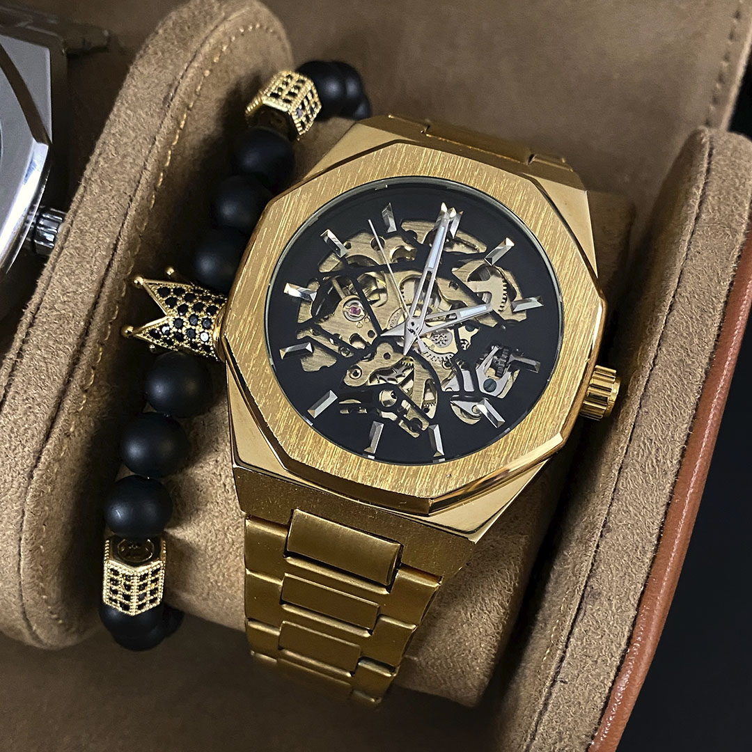 Дана модель годинника Forsining — механічна з автопідзаводом. Перевагою годинника з автопідзаводом є те, що при струшуванні годинника маятник обертається і підзаводит механізм, тому, коли Ви носите годинник на руці і перебуваєте в русі, він додатково підзаводяться.